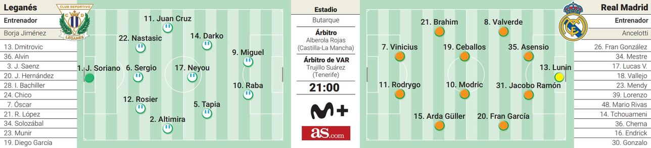 Brahim – Endrick (82. Gonzalo) – Rodrygo (46. Vinícius)