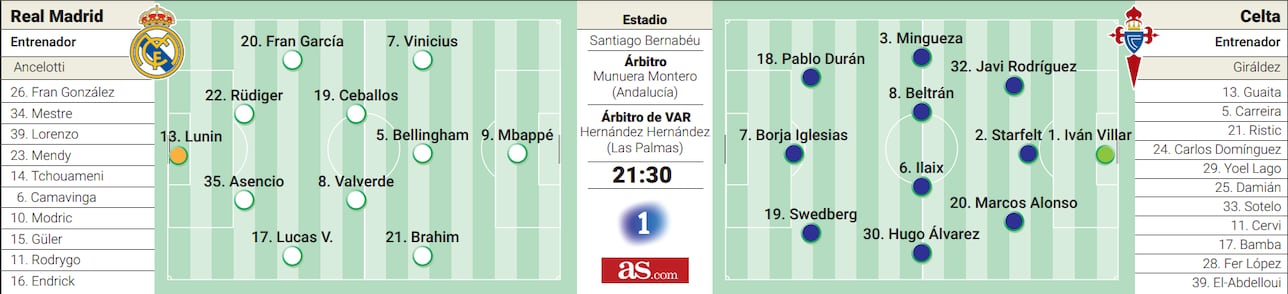 Lucas – Asencio – Rüdiger – Fran García (90.+2 Bellingham)