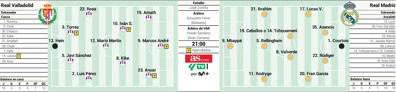 Ancelotti se rozhodl v utkání na Estadio José Zorrillo pošetřit Lucase Vázqueze a na pravém kraji otestoval tentokrát Raúla Asencia. Tchouaméni se po dvou týdnech opět postavil na pozici stopera vedle Rüdigera. Místo Viniho, který byl ještě v trestu po vyloučení na Mestalle hrál v základu Brahim Díaz.