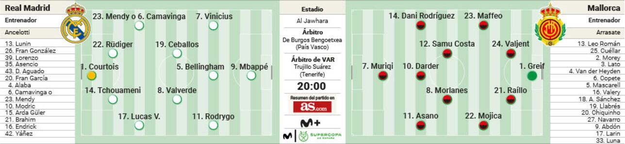 Trenér Jagoba Arrasate může počítat se všemi hráči, Mallorca se přiletěla do Saúdské Arábie porvat v plné palbě. Ve výběru Los Bermellones jsou i dva slovenští hráči: gólman Dominik Greif a obránce Martin Valjent.